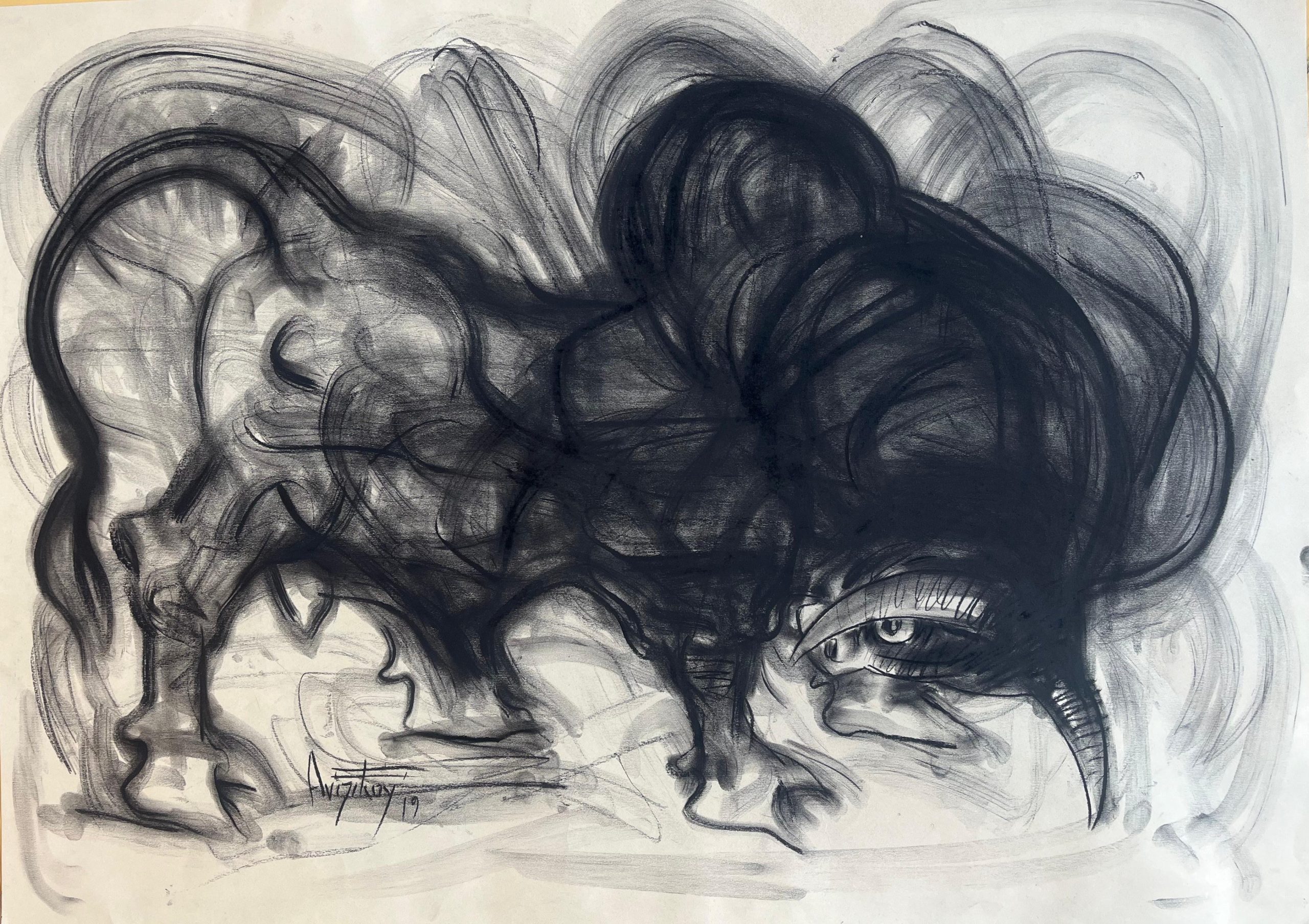 'Bull Series 1' | 2016 | 29" x 22.7" | Avijit Roy | Charcoal on paper