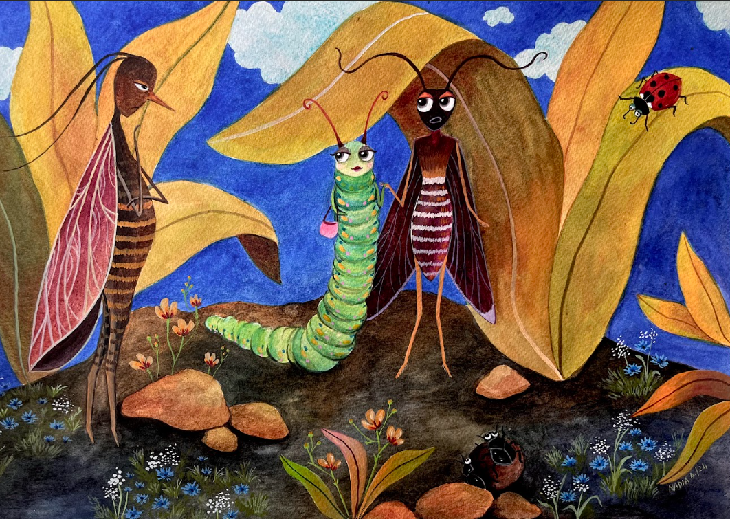 'Loser Has To Eat a Worm' | 15" x 19" | Nadia De Souza | Watercolour and Gouache on Paper