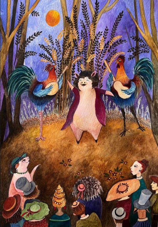 'Feeding Time' | 10.5" x 15" | Francis De Sousa | Watercolour and Gouache on Paper