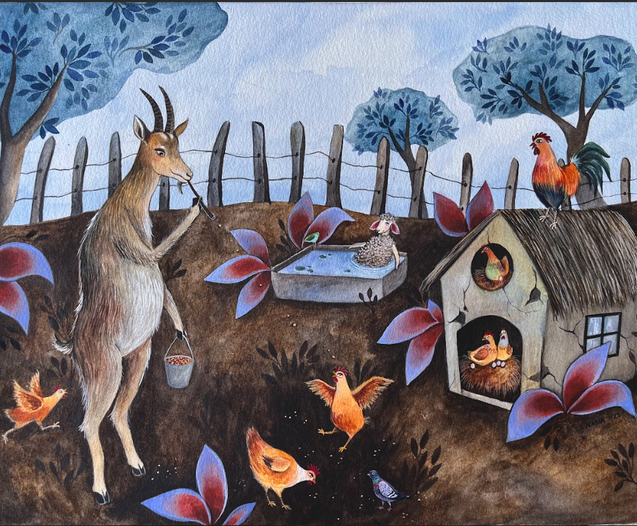 'Feeding Time' | 10.5" x 15" | Francis De Sousa | Watercolour and Gouache on Paper