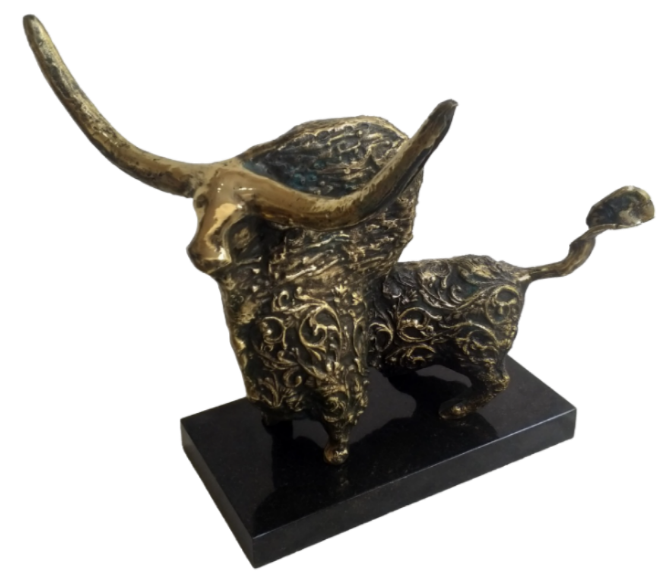 'Bull 2 ' | 15" x 15" x 22" | Casted Brass Granite pedestal