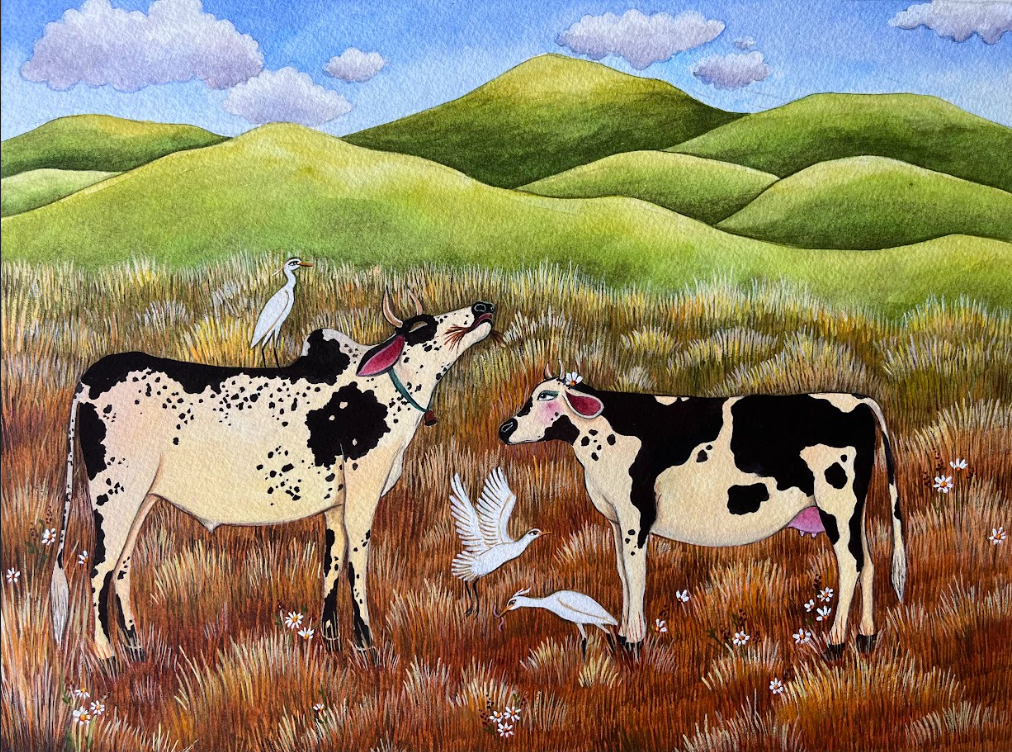 'Feeding Time' | 10.5" x 15" | Francis De Sousa | Watercolour and Gouache on Paper