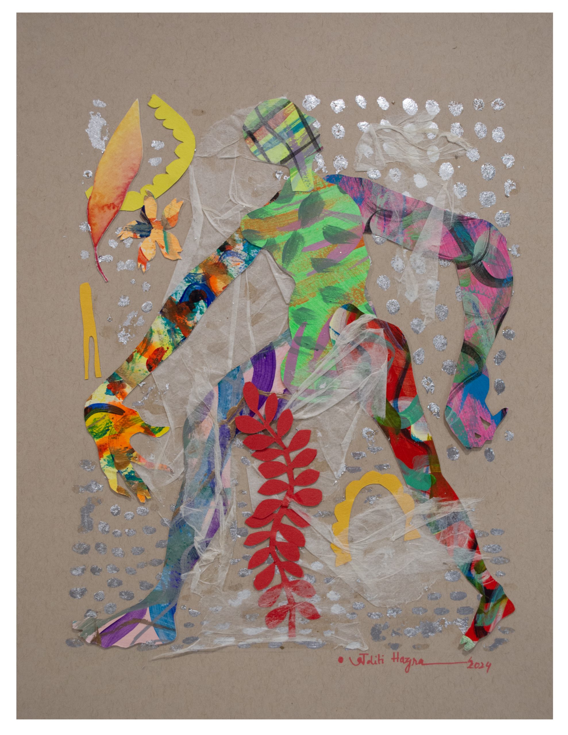 'UTSAVAM - VII' | 9" x 12" | Aditi Hazra | Hand-painted Paper Cutouts | Metallic Leaf on Post Consumer Fiber Sheet | Natural Nepalese Lokta