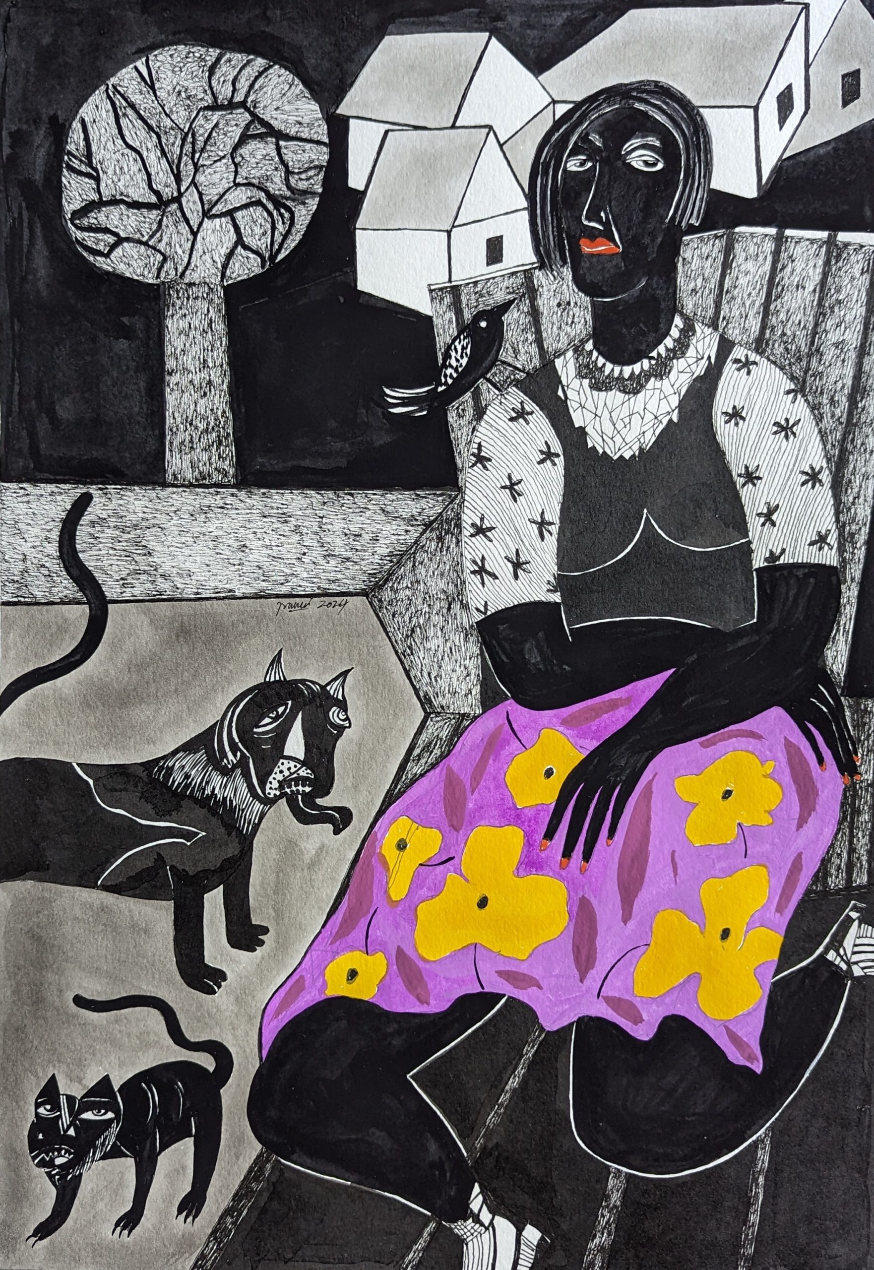 'Lonely in the Garden' | 10.5" x 15" | Francis De Sousa | Pen and Ink with Watercolour on Paper