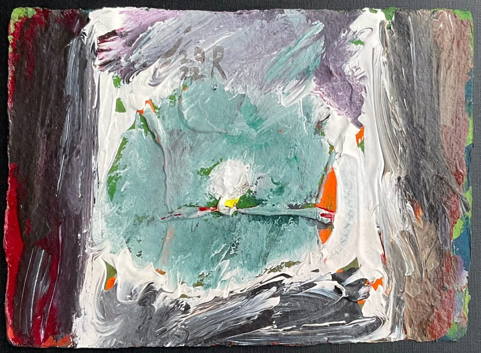 "P" | 2022 | 7.5"x6" | acrylic on handmade paper | Jyotee Kolte
