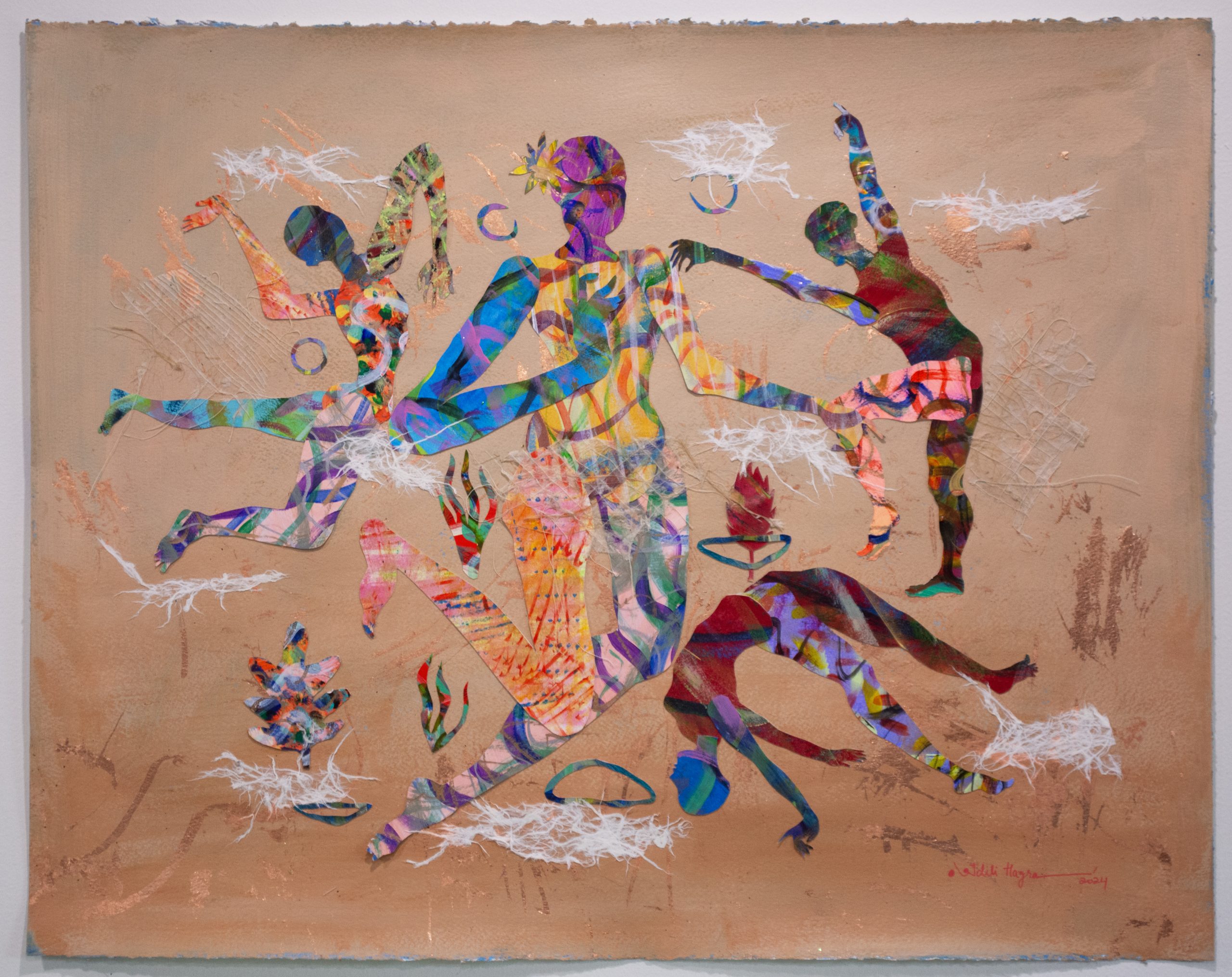'Endless Dance VII' | 9" x 12" | Aditi Hazra | Hand-painted Paper Cutouts | Metallic Leaf on Post Consumer Fiber Sheet | Natural Nepalese Lokta
