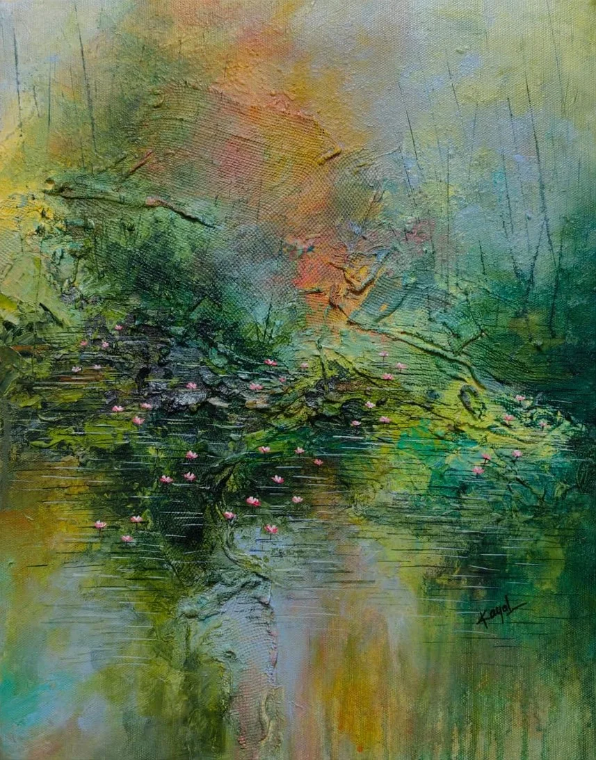 'Fontaine rose Giverny' | 16"x16" | 2019 | abstract | acrylic on canvas | Sen shombit
