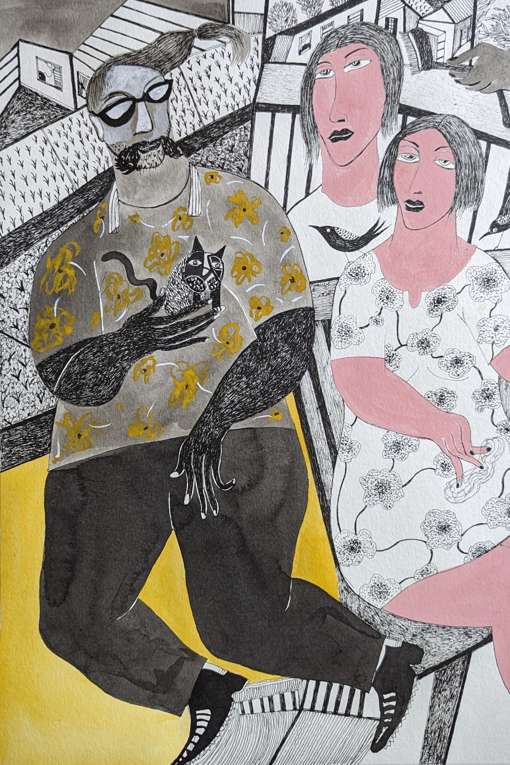 'Point of Contention' | 10.5" x 15" | Francis De Sousa | Pen and Ink with Gouache on Paper