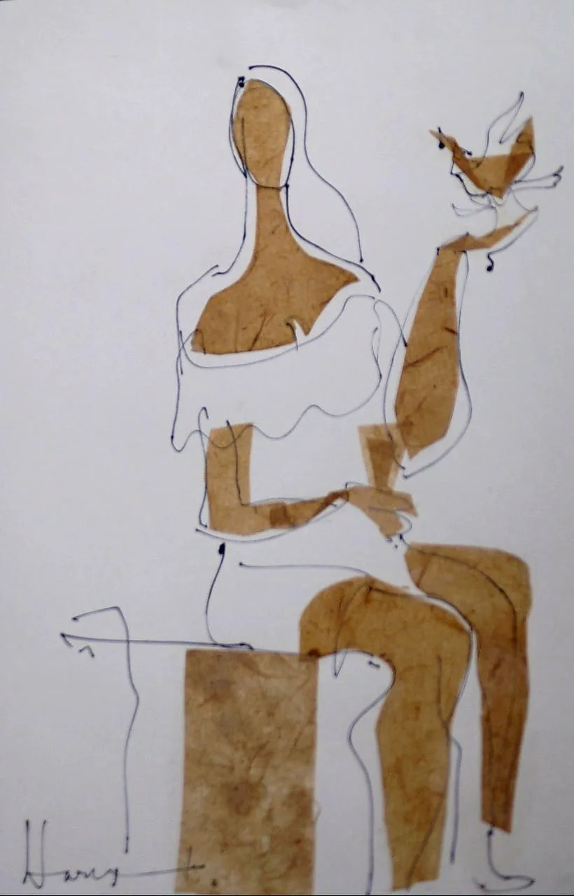 'Untitled 2' | 15"x20" | 2018 | figurative | haren thakur | harenthakur | mixedmedia | rice paper on board