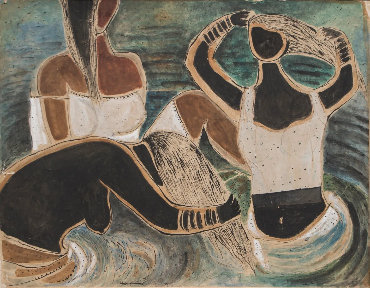 "Mother taking bath" | 28'x22' | haren thakur | Water colour on rice paper