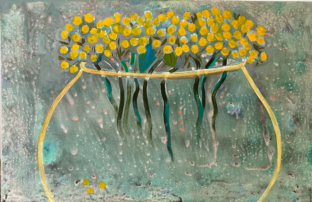 'Mauve Flowers' | 2023 | 23" x 16" | Acrylic on paper | Rekha Rao Hebbar