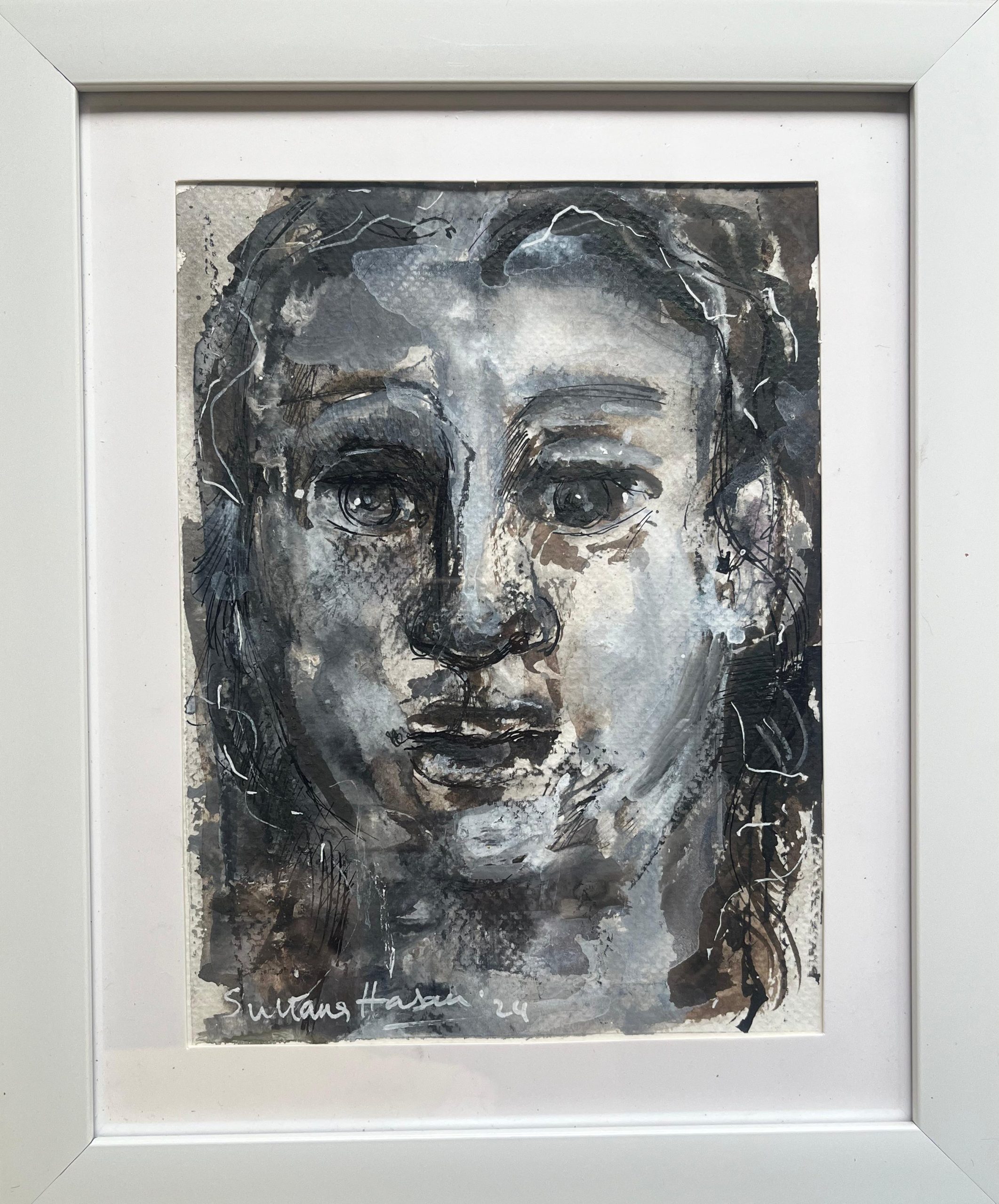 ‘Untitled' | 2024 | Sultana Hasan | Watercolor and pen on paper | With frame- 11.2" X 9.2" Without frame- 9.5" X 7.5"