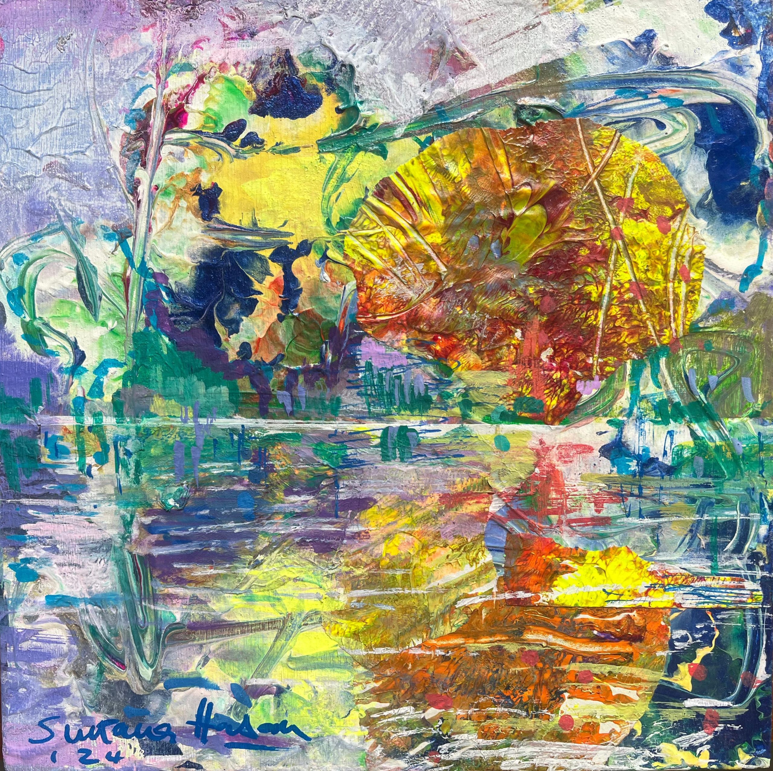 ‘Untitled' | 2024 | 8'' x 8'' | Mixed media on MDF board | Sultana Hasan
