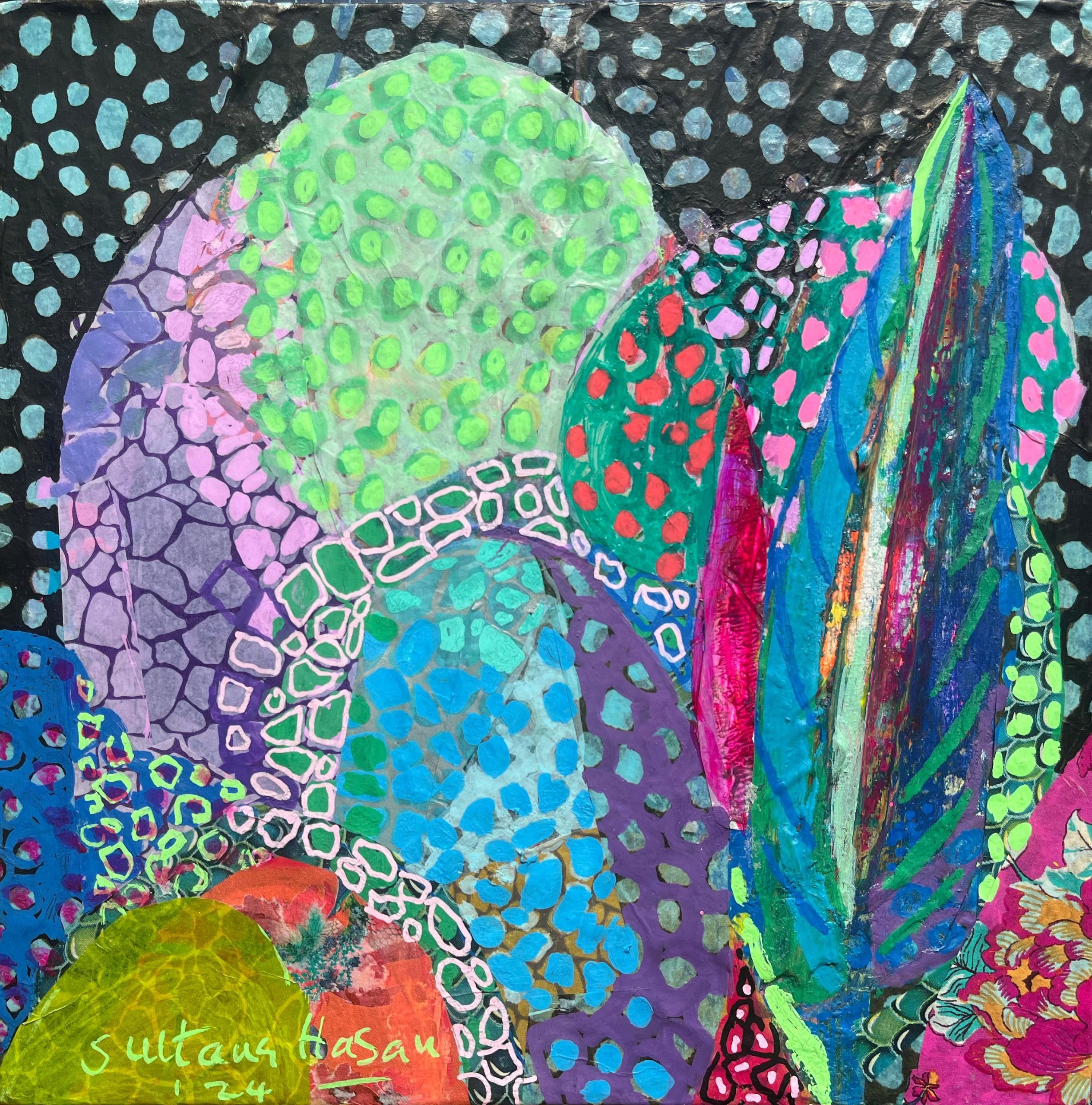 ‘Untitled' | 2024 | 8'' x 8'' | Mixed media on MDF board | Sultana Hasan