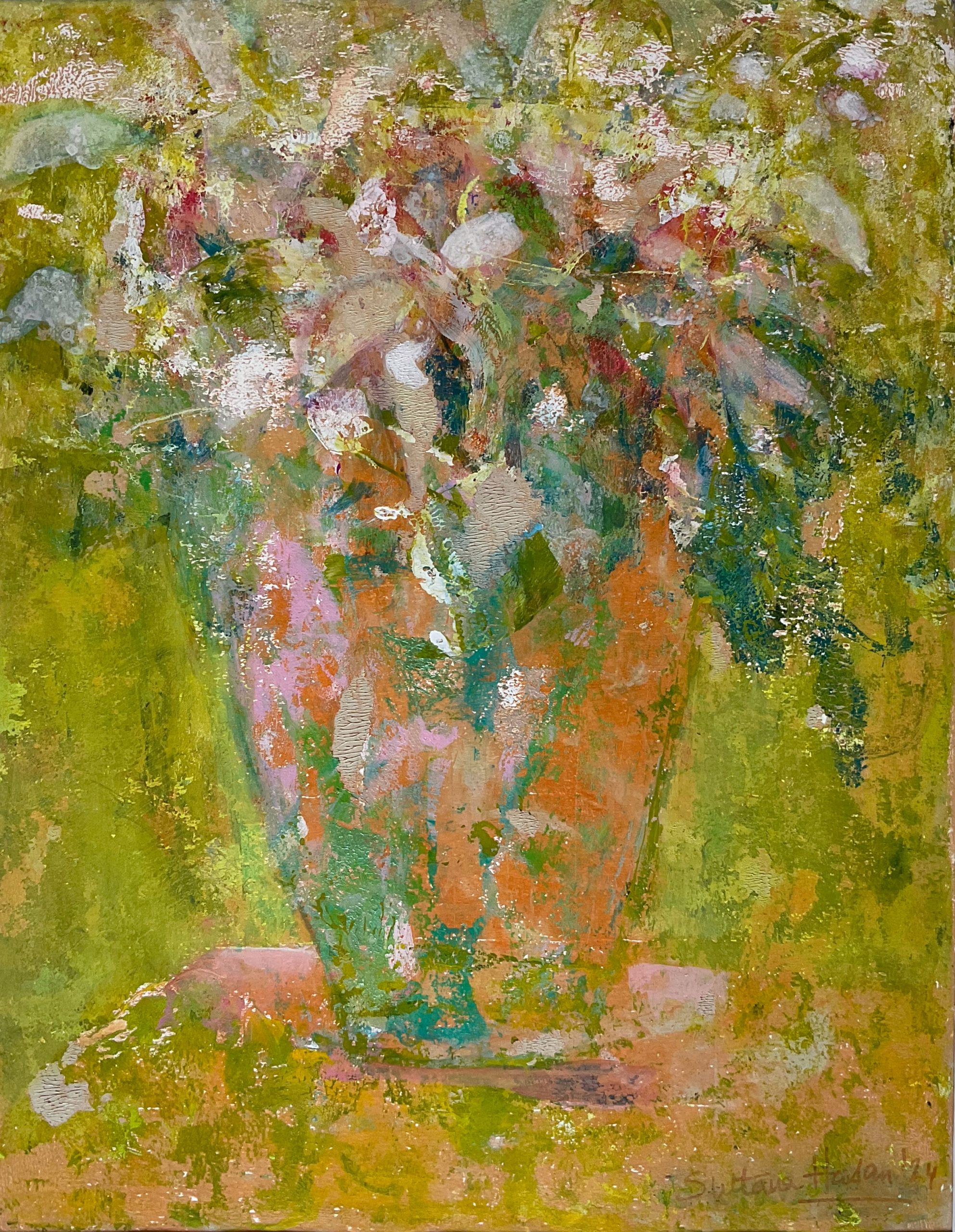 ‘Untitled' | 2024 | 8'' x 8'' | Mixed media on MDF board | Sultana Hasan