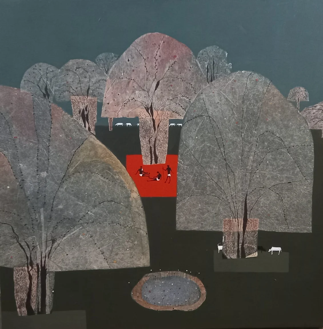 "Palash" | 2019 | 24"x24" | figurative | haren thakur | harenthakur | mixedmedia | rice paper on board